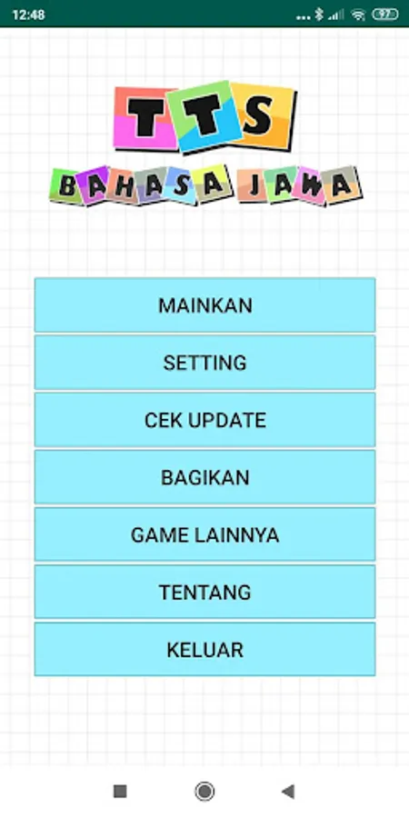 TTS Bahasa Jawa merupakan salah satu game permainan untuk mempelajari bahasa Jawa. Soal-soal dari TTS ini kebanyakan diambil dari soal-soal ujian Bahasa Jawa tingkat Sekolah Dasar. Diharapkan dapat digunakan sebagai alat bantu untuk pelajar yang baru saja mempelajari Bahasa Jawa.
