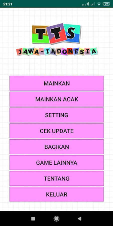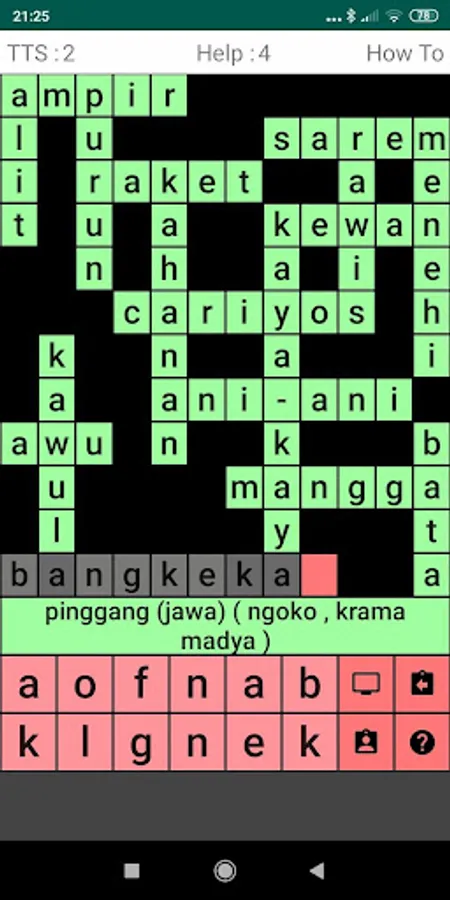 TTS Jawa Indonesia is one of the Latest TTS games to learn the meaning of the word Jawa Indonesia and vice versa. Most of these TTS questions are taken from Pepak Basa Jawa and the Internet, both in the form of ngoko, manners, middle manners, and manners. It is hoped that this collection of word exercises can help students who have recently moved mainly to the Central Java region to better understand basic Javanese Indonesian language. Because the diversity of Javanese languages between regions may be several terms that differ from one region to another and there is a limited knowledge of the author, it is hoped that users can provide input for the development of the accuracy of the words in this TTS.
