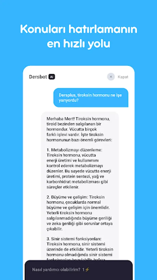 💡 Dersbot: Ask Dersplus about the topics you don't understand! Whether it's math or literature, Dersplus helps you in real time. Students will no longer be alone on complex topics.