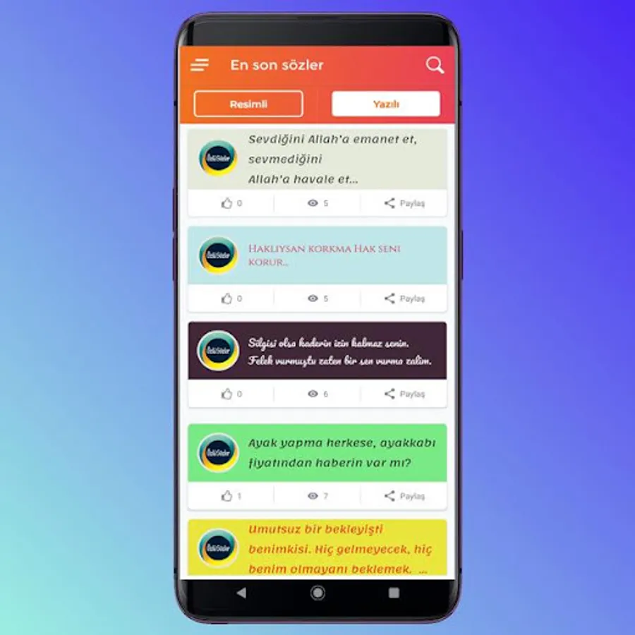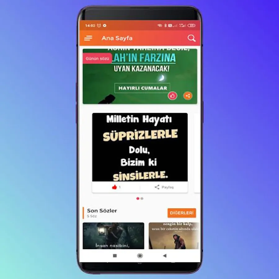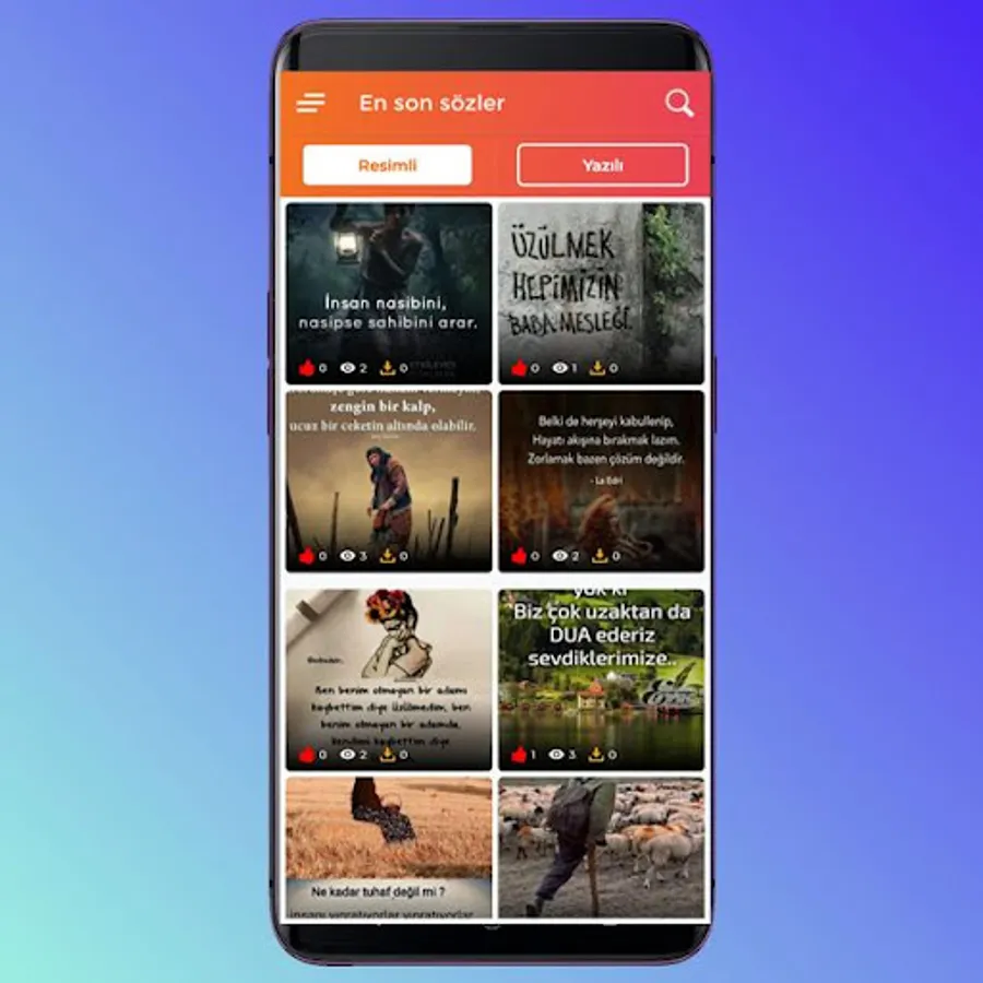Our quotations bank application; There are status words, love words, Friday messages, words in dozens of written and illustrated categories.