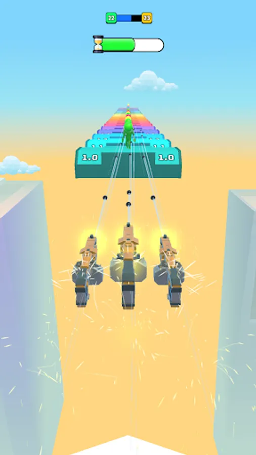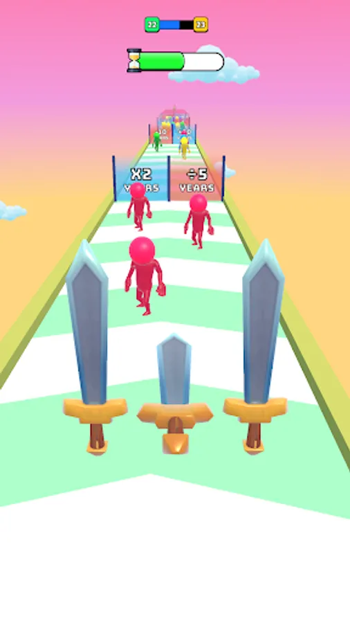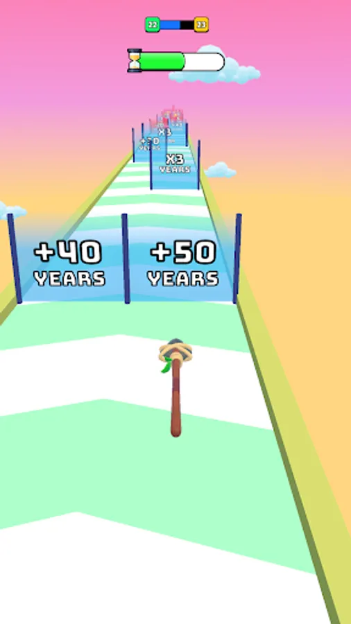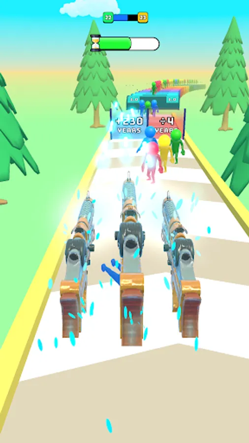 Pick the best time gates to upgrade your weapon from Spear to Laser Gun!