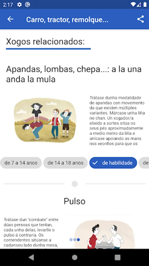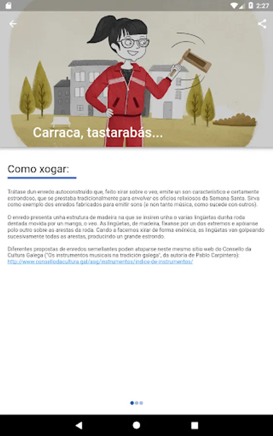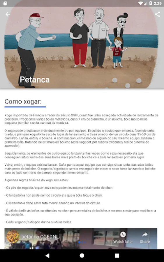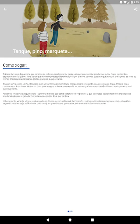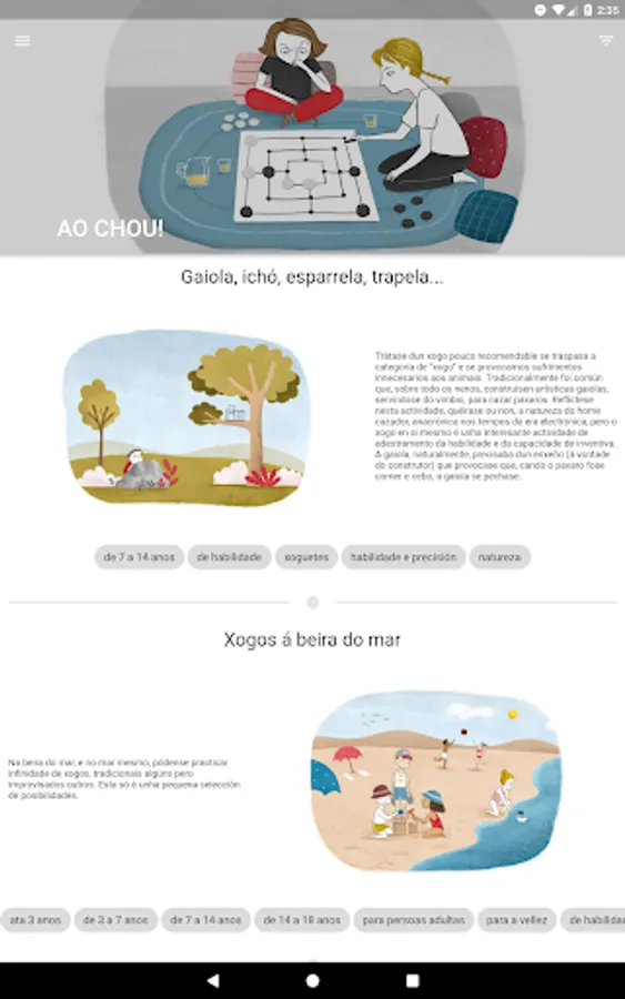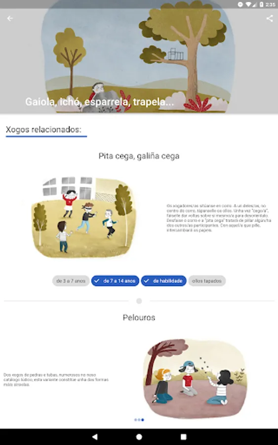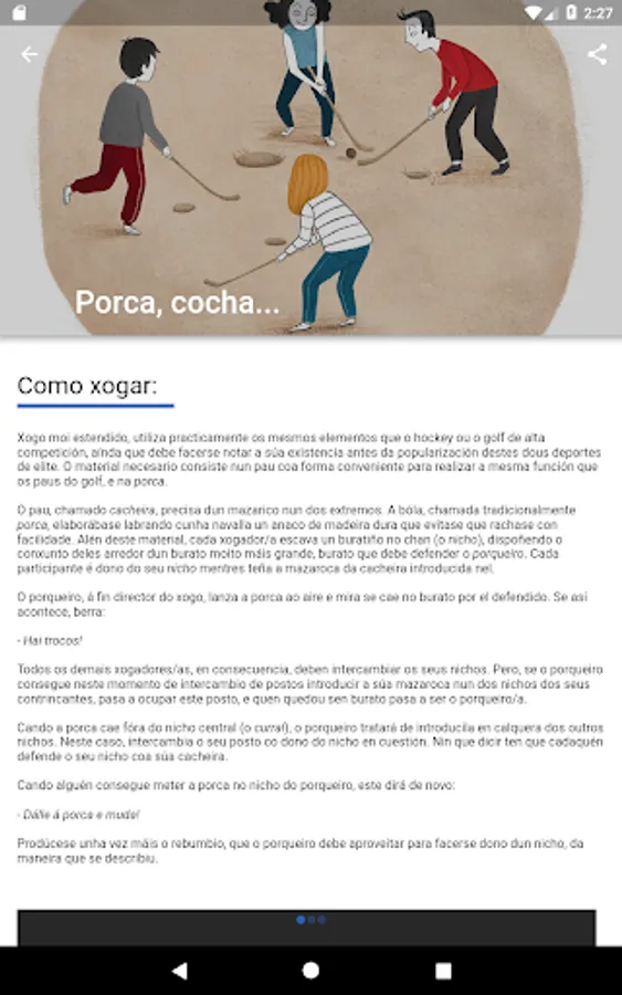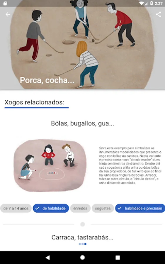 This app is part of a dissemination program of the Galician Culture Council that seeks to disseminate the popular games of Galicia.