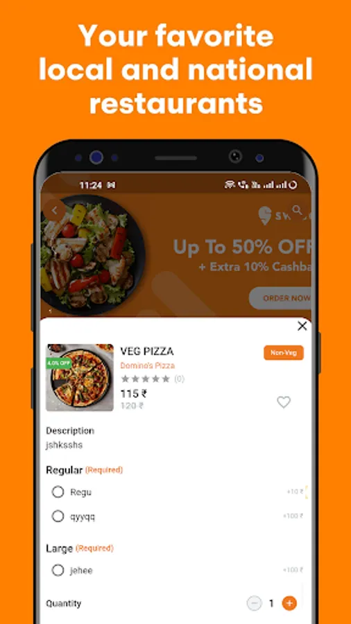 Find your favorite's local restaurants,as well as top change like Domino's,KFC , Burger- King, Pizza Hut, Fresh Minenu Mc Donands, Subdyway,faasos, Cafe Coffee day and more.
