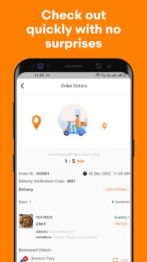 Get updates on your order status and track your delivery partners location on a map from the restaurant to your doorstep.