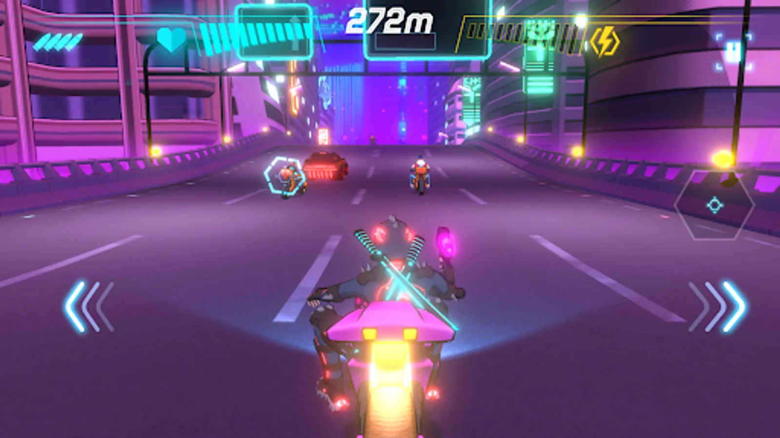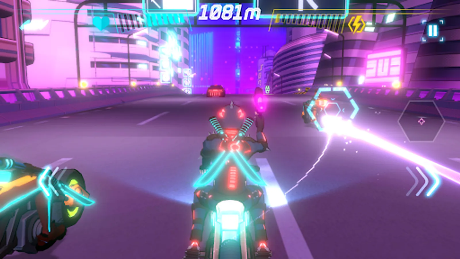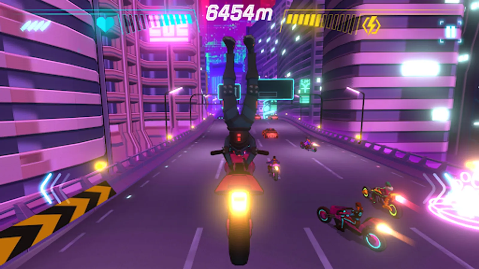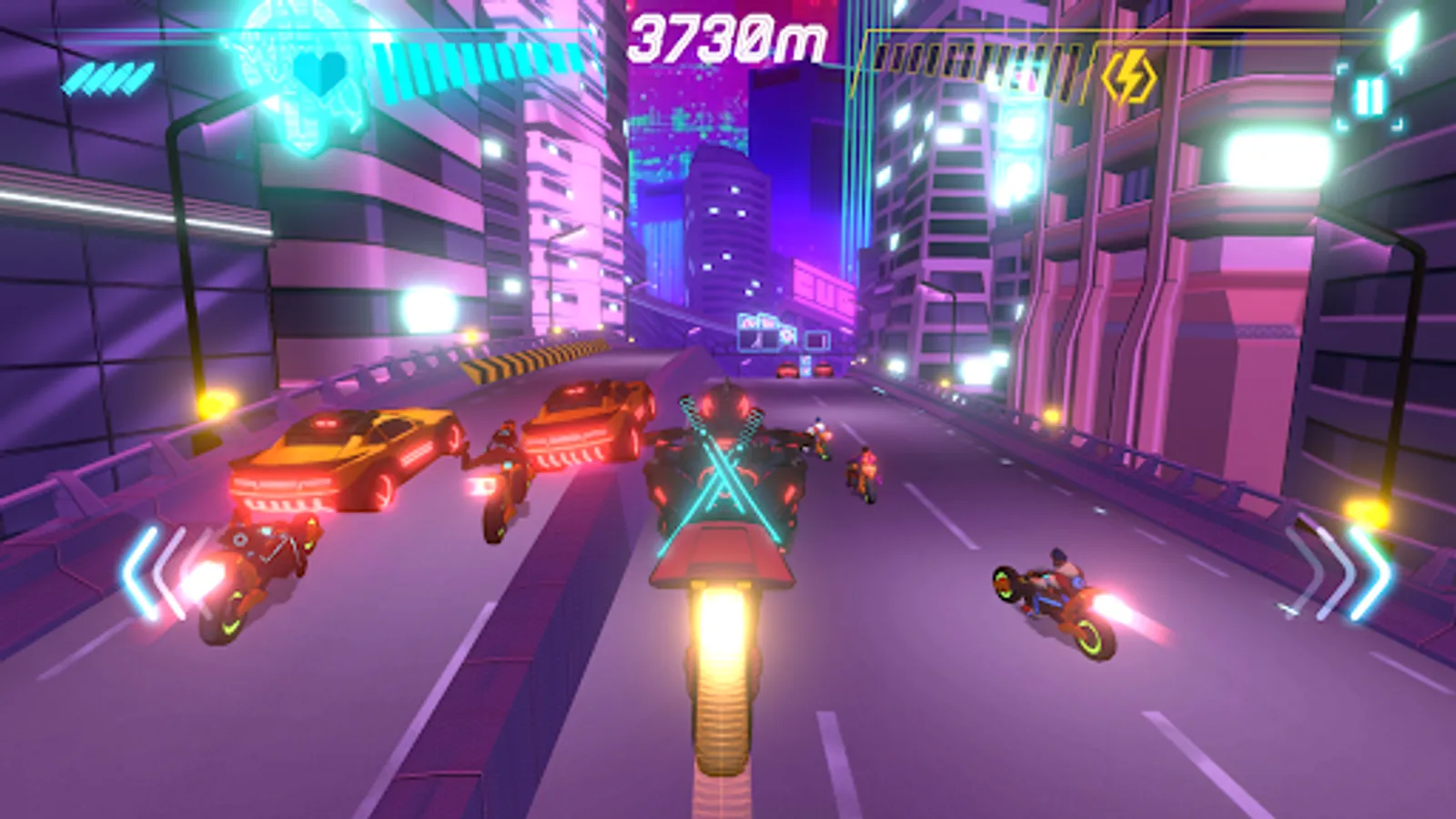 Ride against tyranny through the glowing metropolis on your unique variety of tech bikes