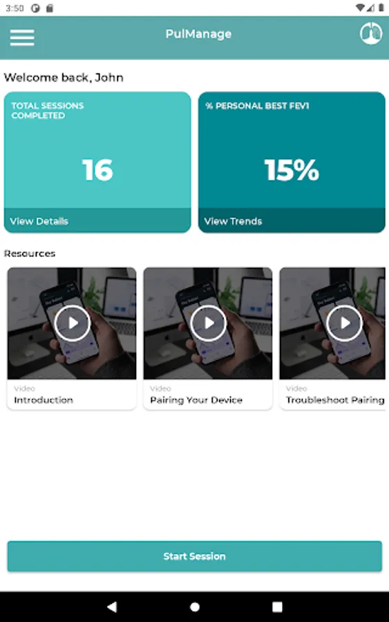 The PulManage™ app is designed to provide information to help you and your doctor monitor your respiratory function. This app does not replace clinical advice or guidance. Always consult with your clinical team before making any medical decisions.