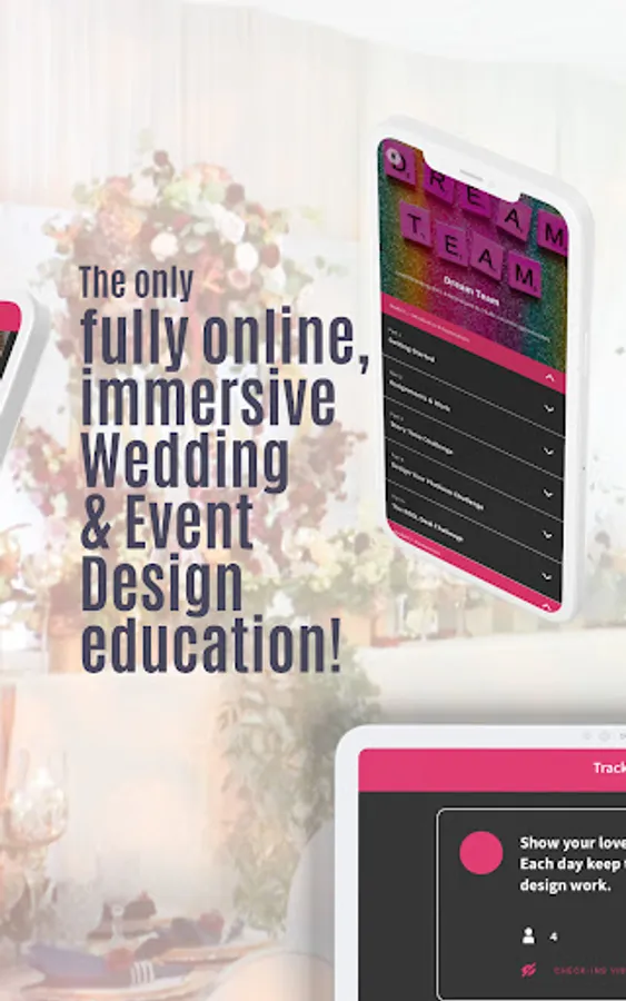 If you have a passion for design then this app is 100% for you. Our students make up the Dream Team where we focus on creating the perfect event day for our clients and making their dreams come true while also living our passion. Our students proudly proclaim "I AM A DREAM DESIGNER" as they take control of their own careers while helping to make their client's dream wedding happen. Join our Dream Designer Challenge to learn everything you need to know to launch your career in the wedding and event industry.