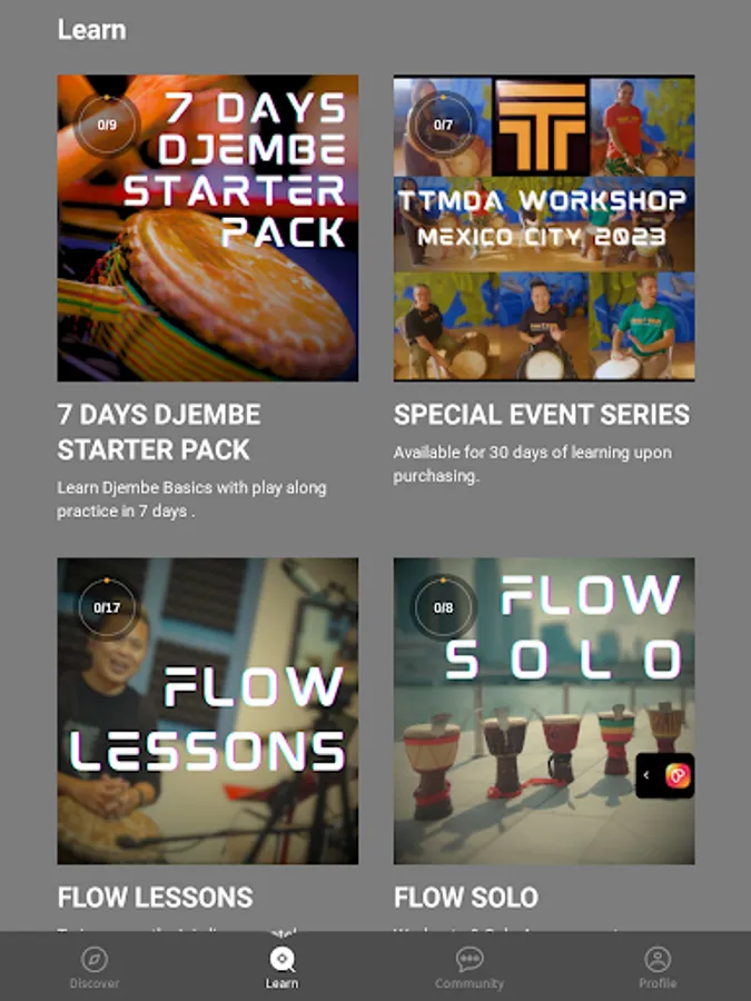 Rhythms, Solos, Audio Tracks with new content updated every month. Whether you are a student or teacher, this can be your go-to reference for djembe playing contents. All in the convenience of an app in your pocket anytime, anywhere.