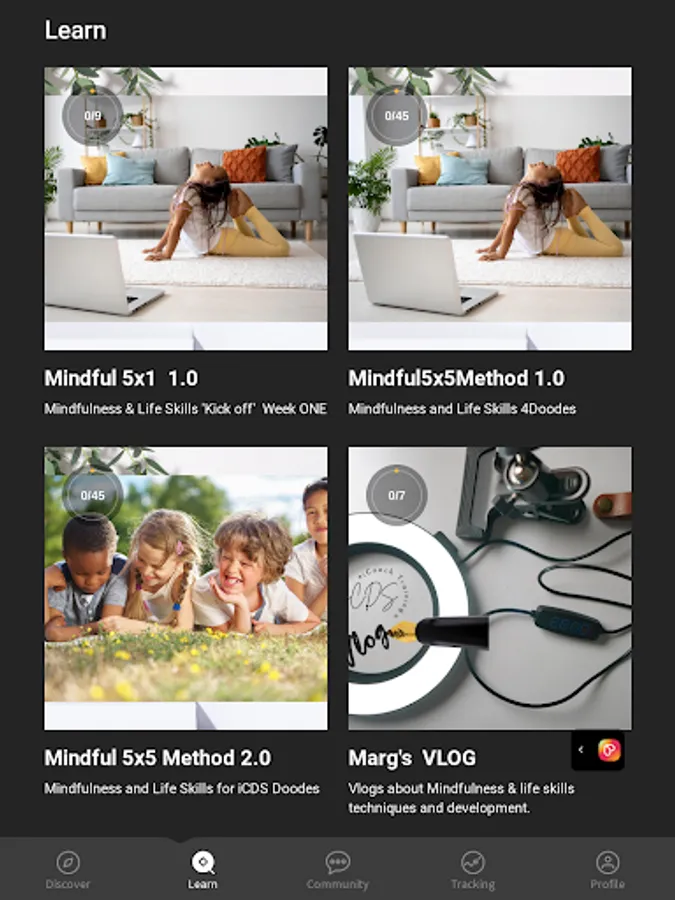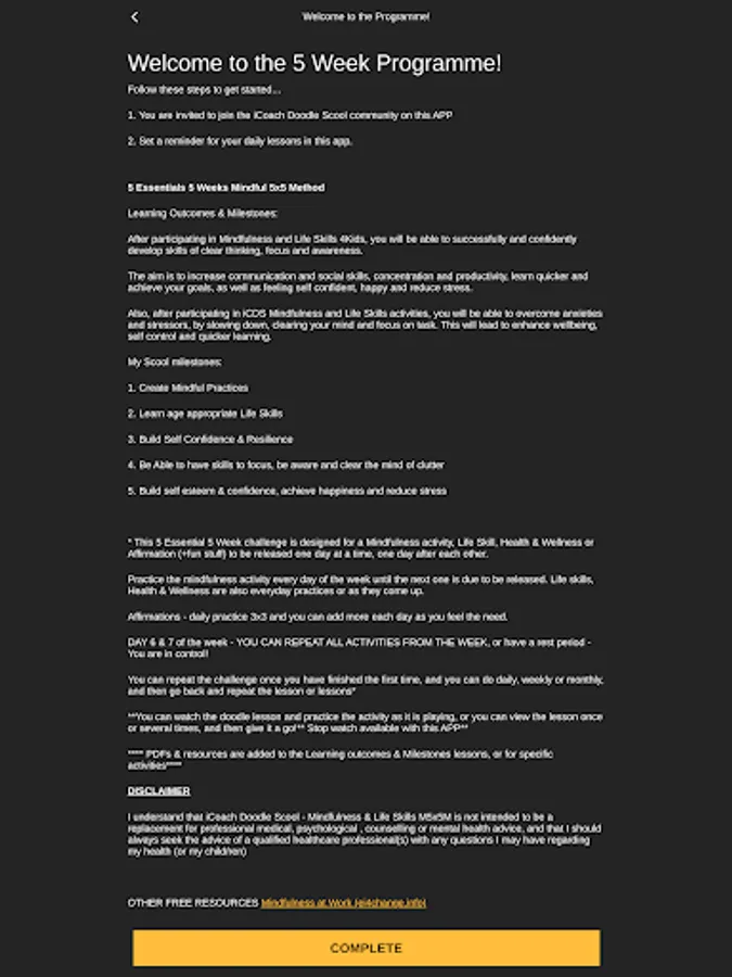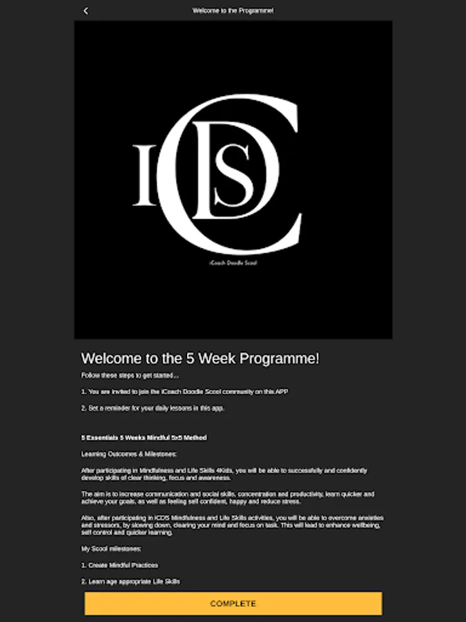 iCoach Doodle Scool introduces entry level Mindfulness Activities, Life-Skills, Health & Wellness lessons, affirmations, and builds towards intermediate level with each new M5x5M program.