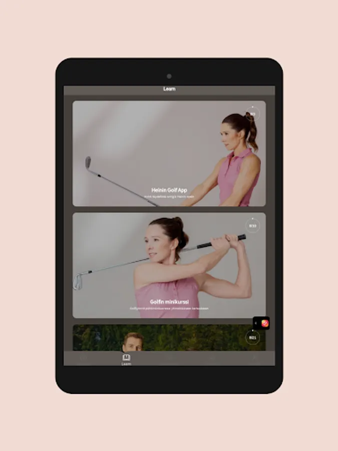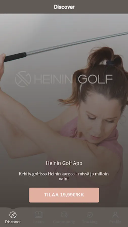 Heinin Golf App sisältää ohjeita ja vinkkejä golfiin kokonaisvaltaisesti. Opi harjoittelemaan oikein valmiiksi suunniteltujen harjoitusohjelmien avulla. Golfin lisäksi voit treenata itsesi pelikuntoon golfarin fysiikkatreenien, kuten lihaskunnon, voimatreenin ja pilateksen avulla. Kymmenien opetusvideoiden lisäksi voit osallistua viikottaiseen liveopetukseen, jonka sisältöihin voit vaikuttaa. Löydä täydellinen svingisi Heinin ammattitaitoisessa opetuksessa!
