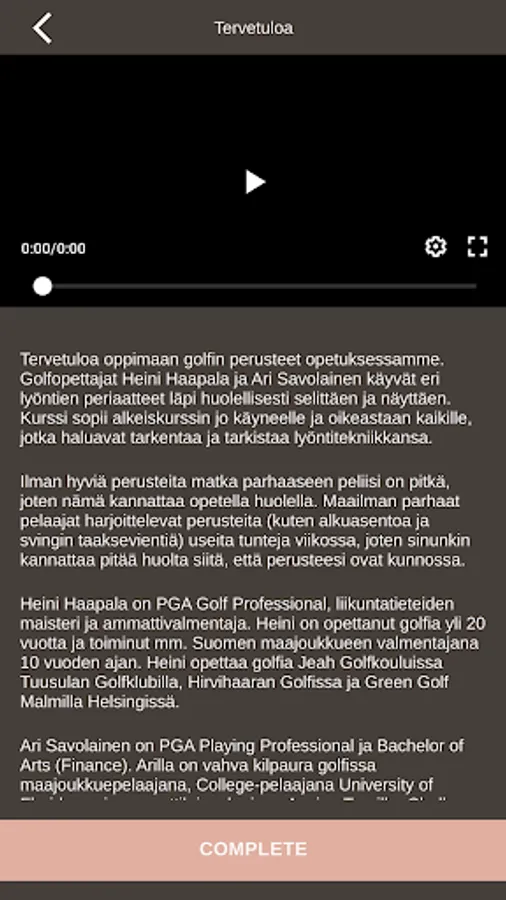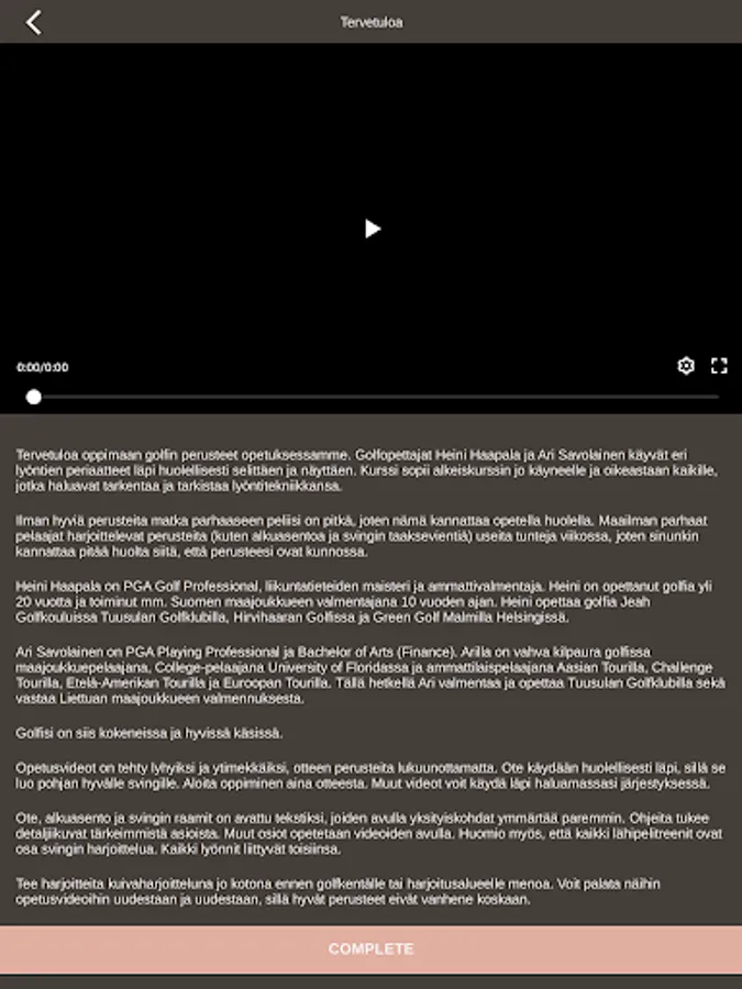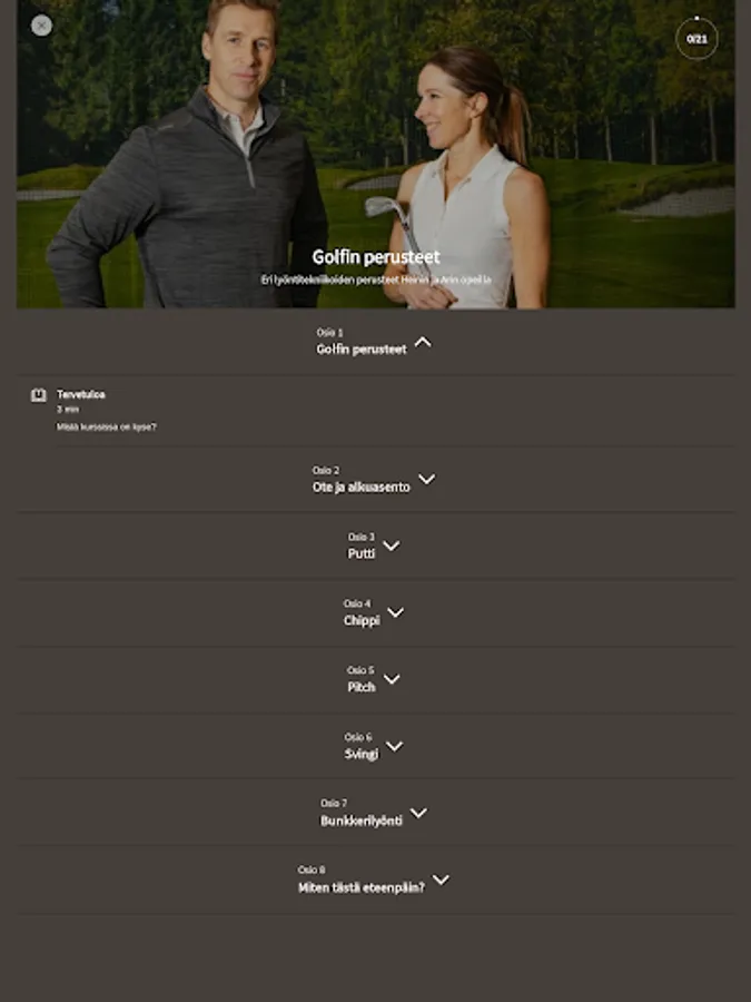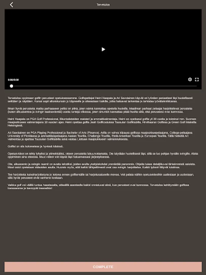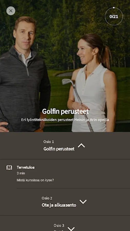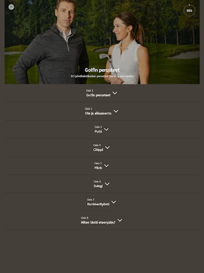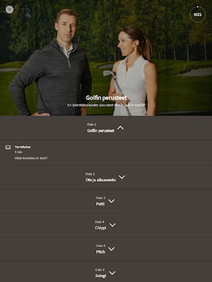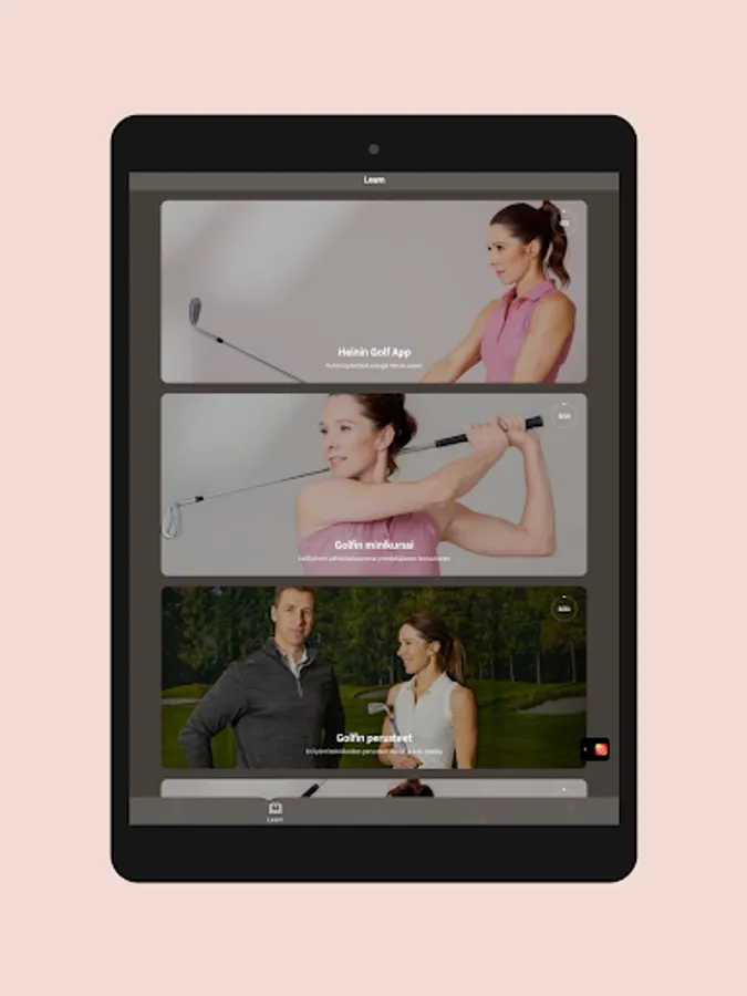 Ota haltuun golflyöntien lyöntitekniikat, pelistrategiaa, mentaalipeliä, fyysisiä ominaisuuksia ja paljon muuta kymmenien opetusvideoiden avulla. Opettajanasi toimii PGA Golf Professional, liikuntatieteiden maisteri, ammattivalmentaja ja pilatesohjaaja Heini Haapala yhdessä eri alojen ammattilaisten kanssa.