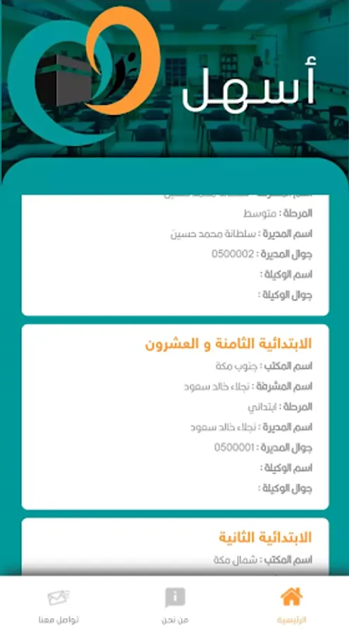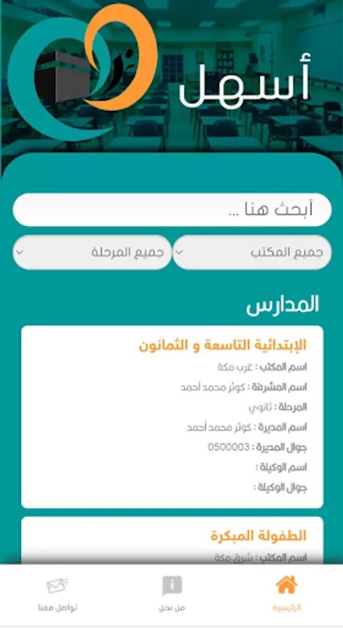 It is a directory for the schools of Makkah Al-Mukarramah that contains information about the name of the school and its communication data with the possibility of searching with ease for the school you want to reach.