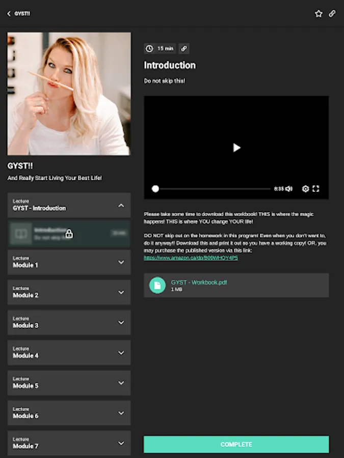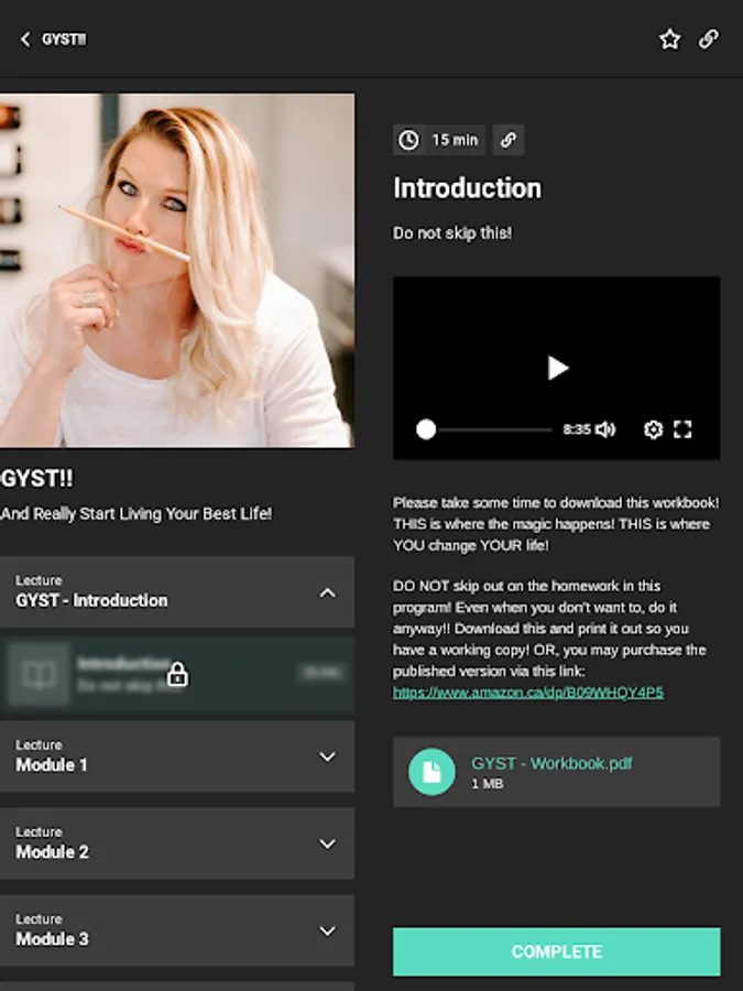 You can expect 23 lessons that will cover ENERGY, Who the Heck You Are, Defining your FOCUS 5 (Lacey's signature course element), Building Confidence, Managing Stress, Solving Problems, Reducing Worry, Managing Anxiety, Having Difficult Conversations, The Power of Growth, Setting Goals, Being Vulnerable, Managing TIME, etc.