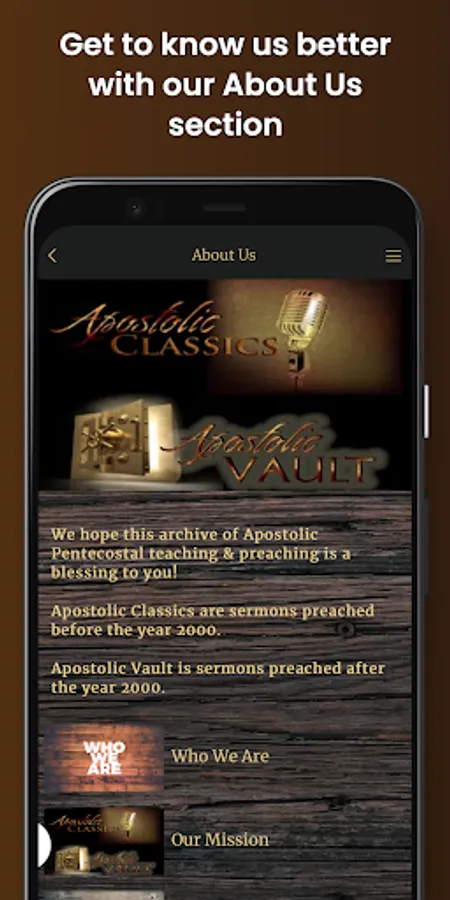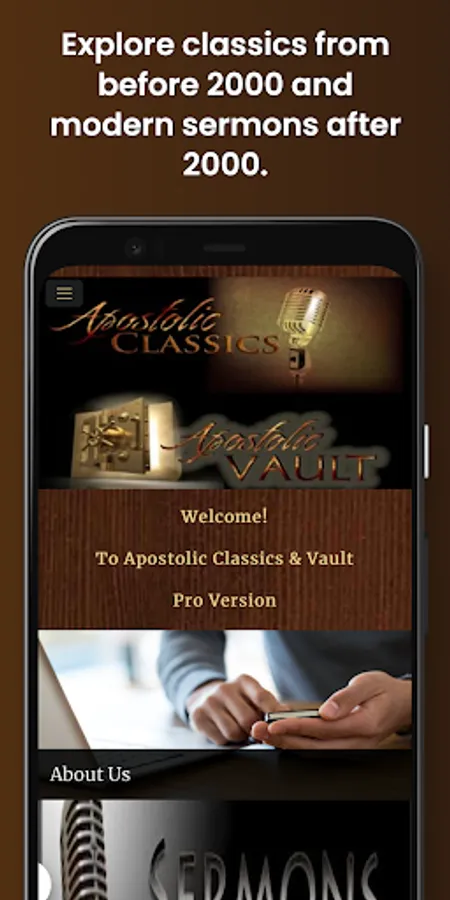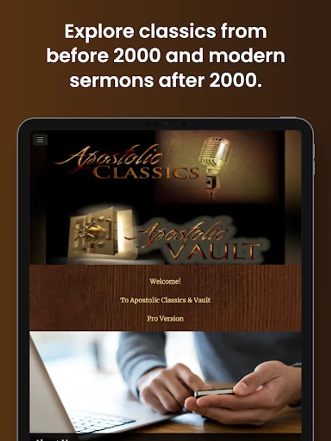 Apostolic Classics and Vault Pro App. This app includes Apostolic Classics sermons from before the year 2000 and Apostolic Vault is sermons after the year 2000. These are Apostolic / Pentecostal sermons from Apostolic / Pentecostal ministers.
