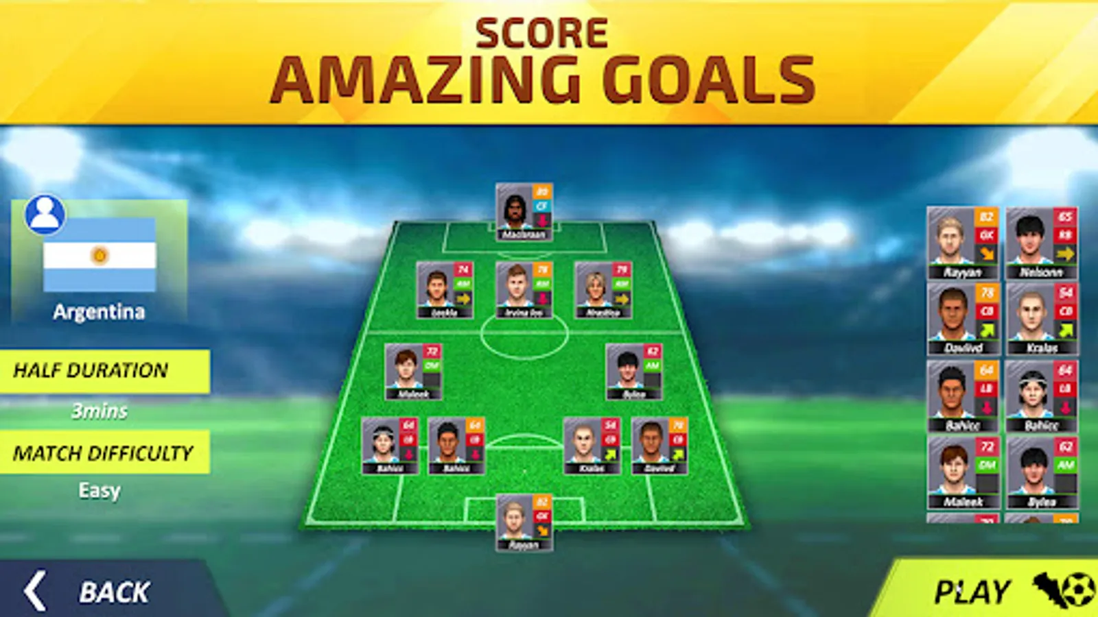 The moment of being a soccer score hero is here, train with all your spirit and win the world star cup with your goals and your teammates. The best national soccer teams are waiting for you in this incredible soccer game!