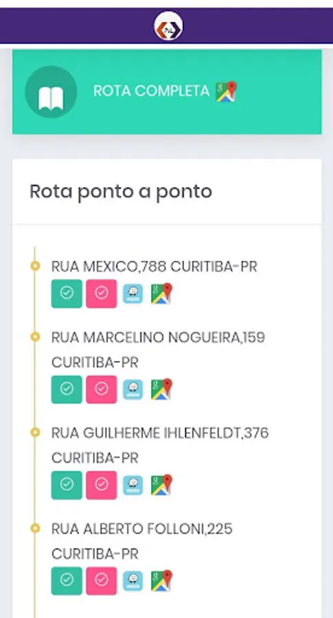Once the route is downloaded to the phone, the application acts offline. Through it the driver can move to the next point, check in and check out manually, if necessary, or automatically by integrating with the Tracker.
