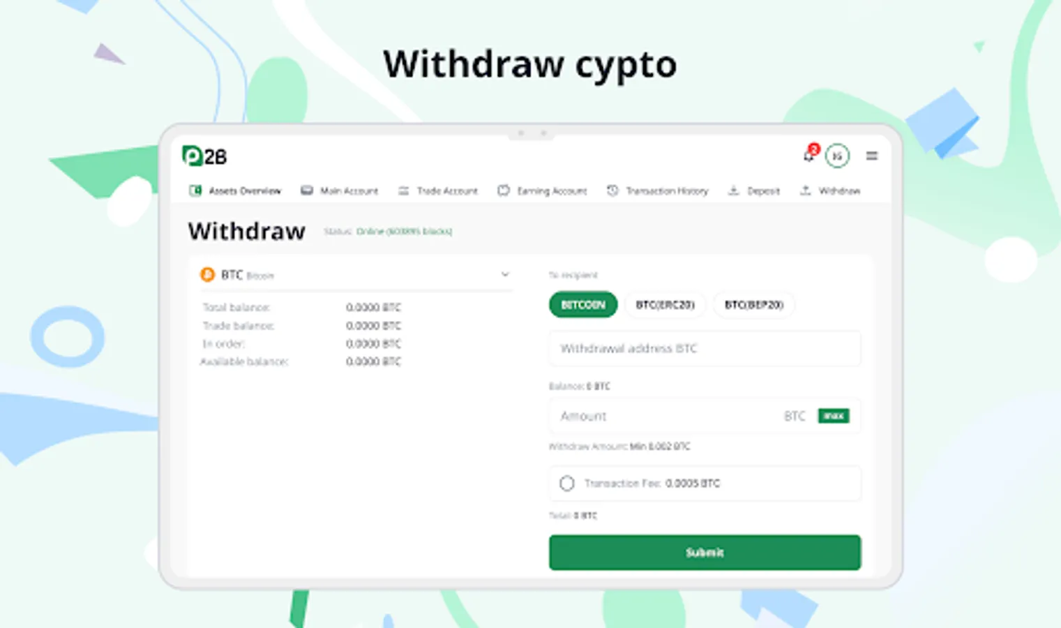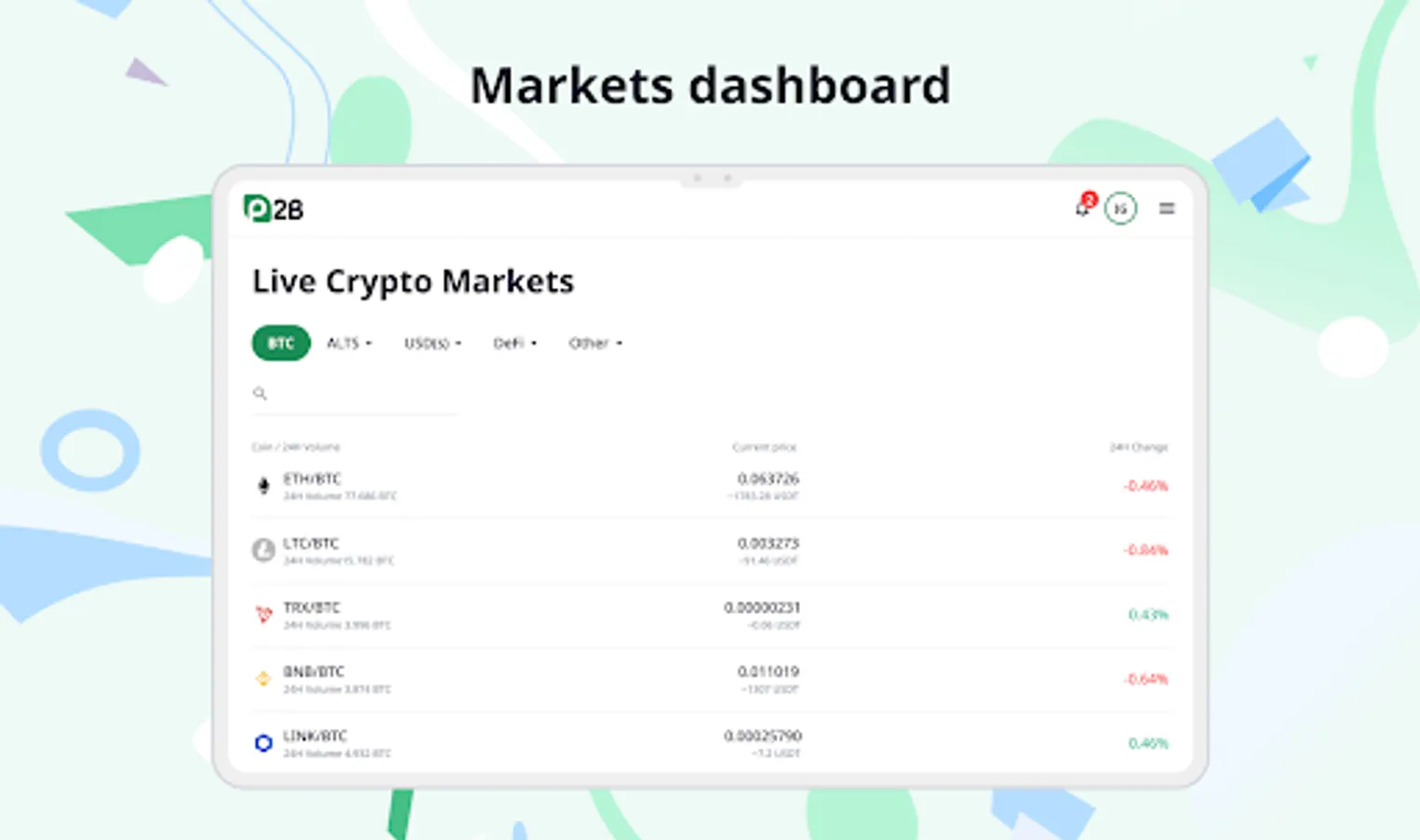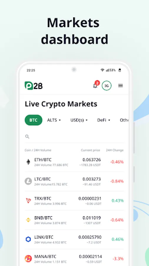Buy, deposit, and withdraw well-known and freshest crypto using this official app of reliable and stable P2B exchange.