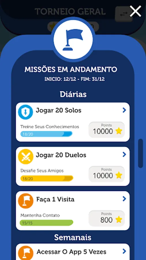 MISSIONS in the game of Quiz Solo or Duel.