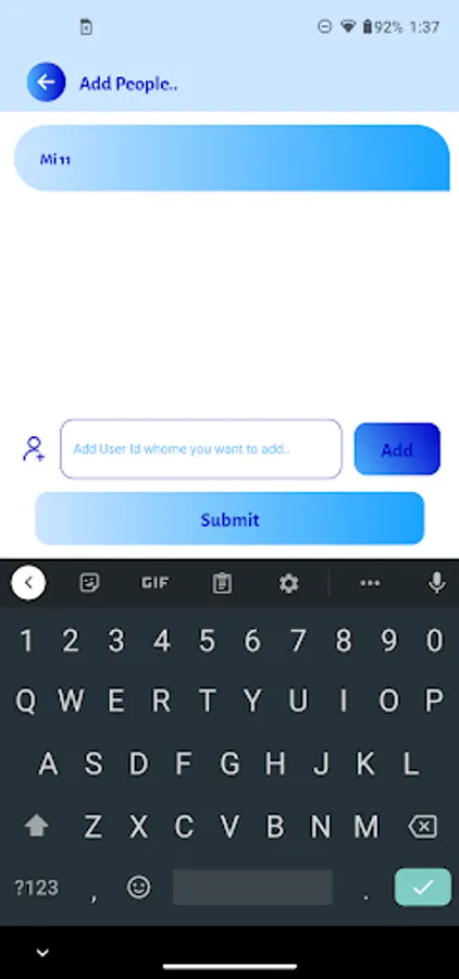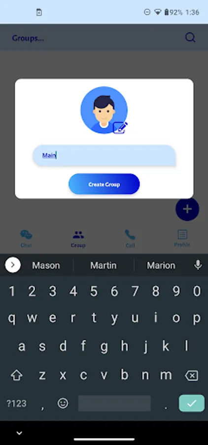 7) To communicate with other users, go to groups, add group, then add users using the User IDs or by scanning their QR codes.