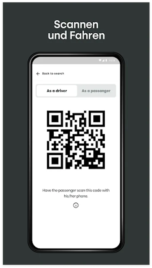 As a passenger, you scan the driver's QR code to start the journey. As soon as your carpool has reached the destination, the journey is automatically considered to be over.
