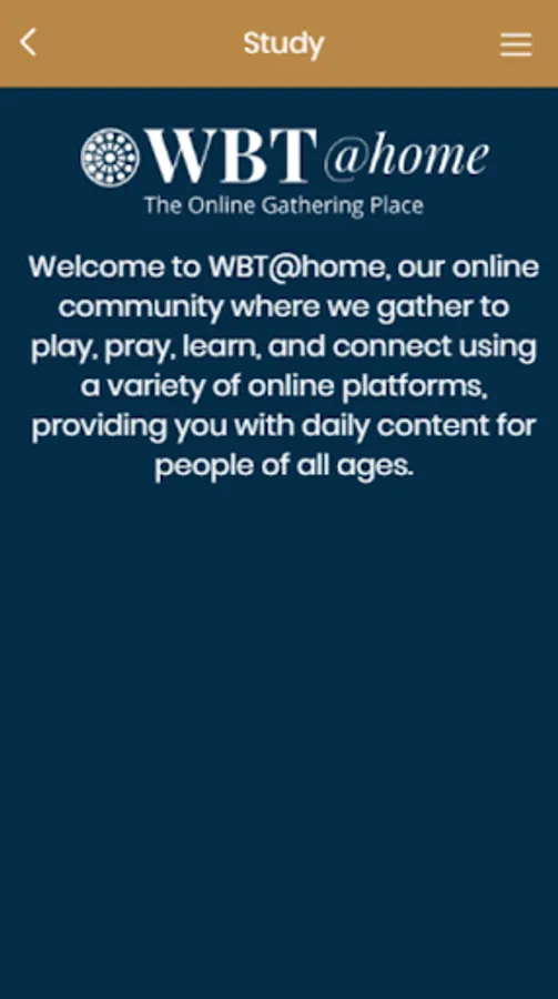 Welcome to WBT@home, our online community where we gather to play, pray, learn, and connect on one App, providing you with daily content and wisdom for people of all ages.
