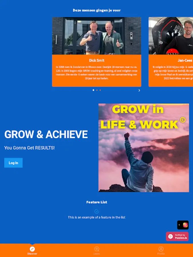 De Grow Method app bestaat uit trainings- en coachingsprogramma's voor ondernemers, leidinggevenden, hun werknemers en individuele deelnemers in: