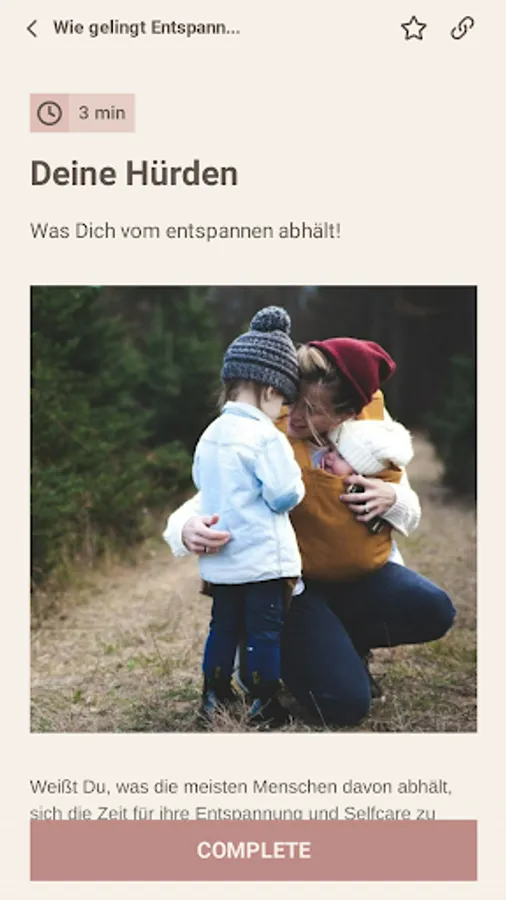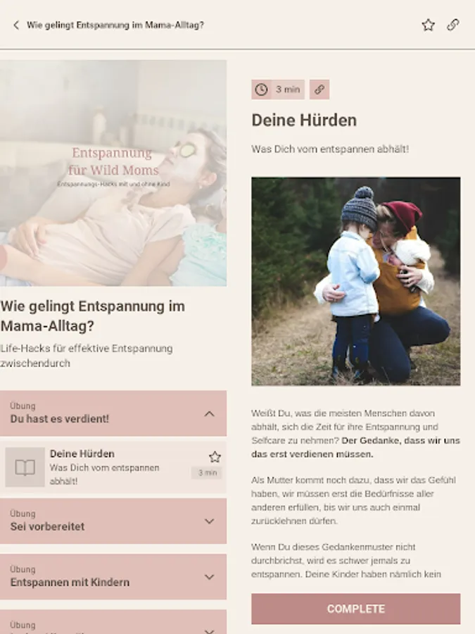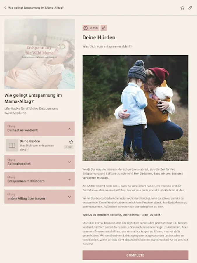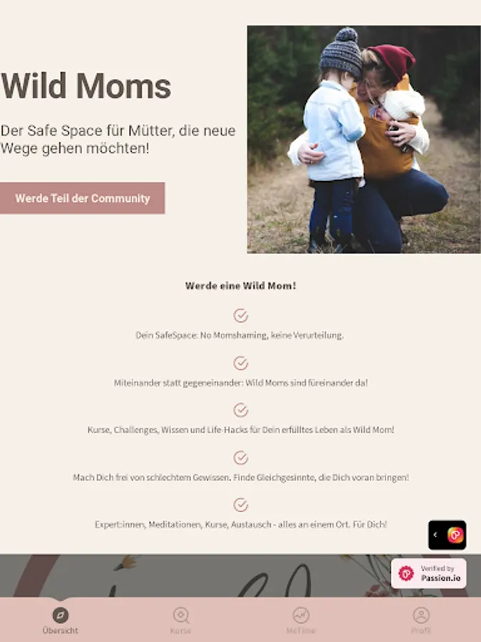 Mehr als eine App! Eine Community für Mütter - ohne #MomShaming. Ein SafeSpace für Frauen mit Kind. Hier treffen sich echte Mütter, die Wert auf einen respektvollen Umgang legen. ExpertInnen teilen ihre Tipps und Tricks rund um die Themen Familienalltag, Selfcare, Entspannung und Business. Kurse, Meditation, Community, Unterstützung und Live-Sessions - alles an einem Ort!