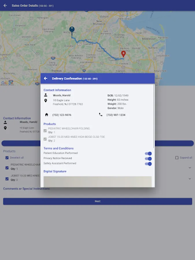 Provide on-site patient education and capture their digital signature directly on the mobile app, confirming that the order has been delivered.