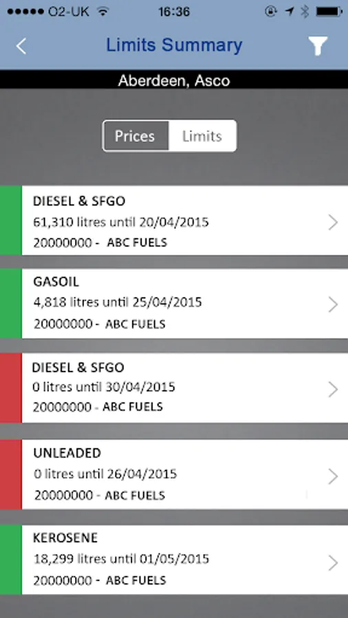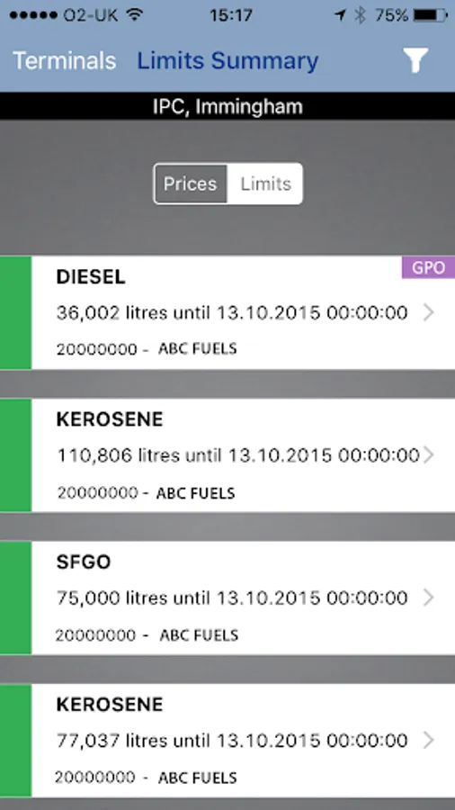 • Quick navigation to fuel prices and an indication of their last move. All you have to do is log in and pick a fuel terminal.