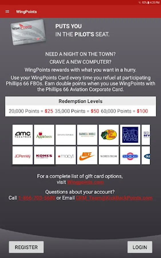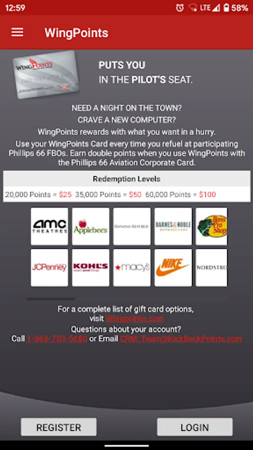 - WingPoints Card registration