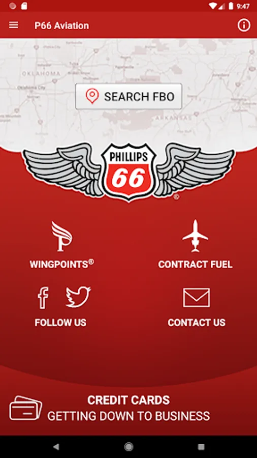 In the air and on the go, valuable Phillips 66 Aviation-related content is at your fingertips with our mobile app. This dynamic app enables you to find and learn more about local FBOs, keep up with industry events, get Contract Fuel price quotes, and up-to-date reward information for your WingPoints« account. It's a super convenient way to stay in touch with the people and places that help make your daily life as an aviation professional easier, and more rewarding.