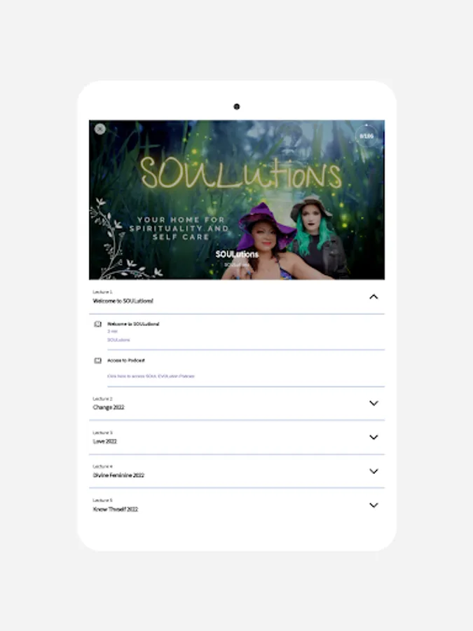 -Access to Over 100 SOULutions episodes on Personal Growth and Spiritual content for all things related to self care, inner child, shadow self, abundance, archetypes, relationships, and so much more.