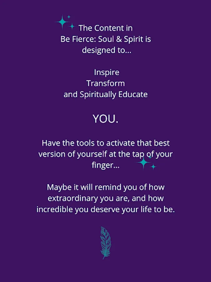 Be Fierce: Soul & Spirit is a one-stop app for all your spiritual needs. From free meditations, resources, courses, masterclasses, tribe chats, and so much more! It is a place where you can relax, balance, grow and inspire the truest, fiercest version of yourself.