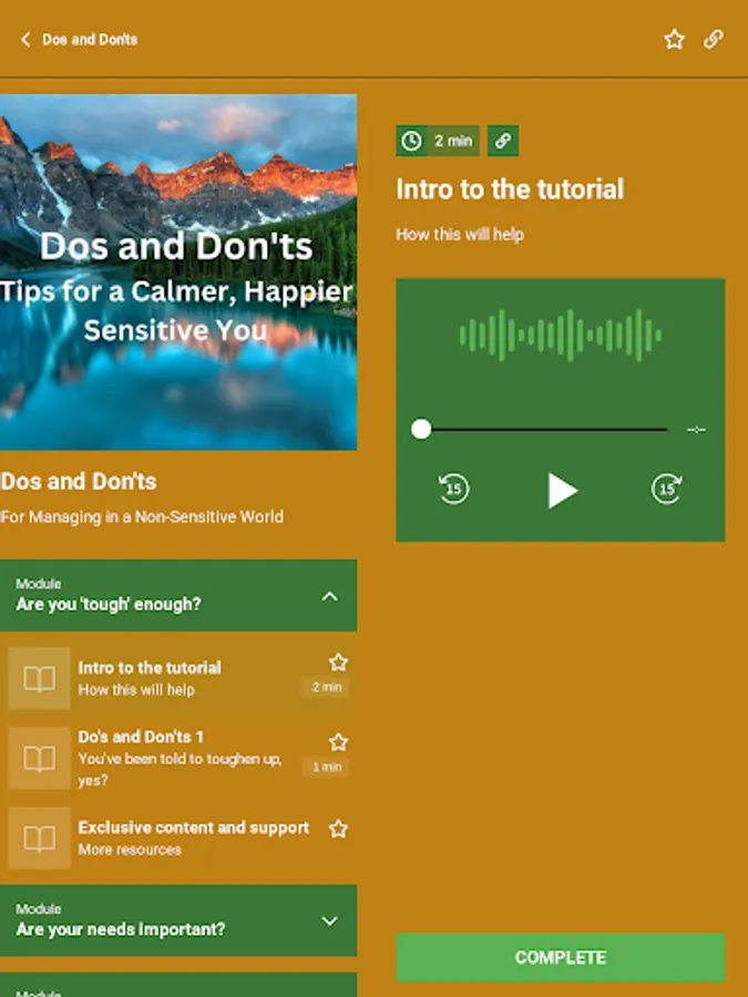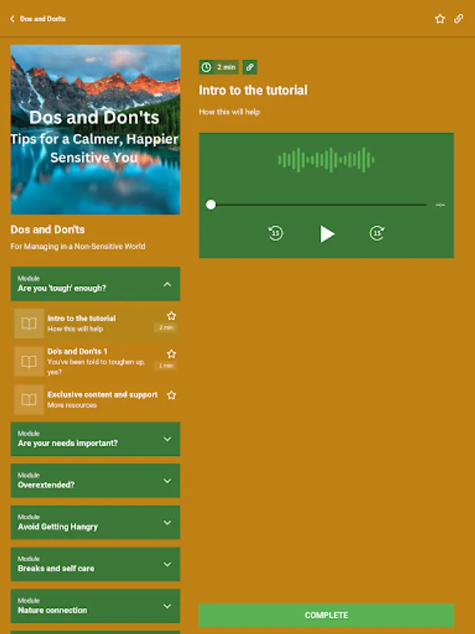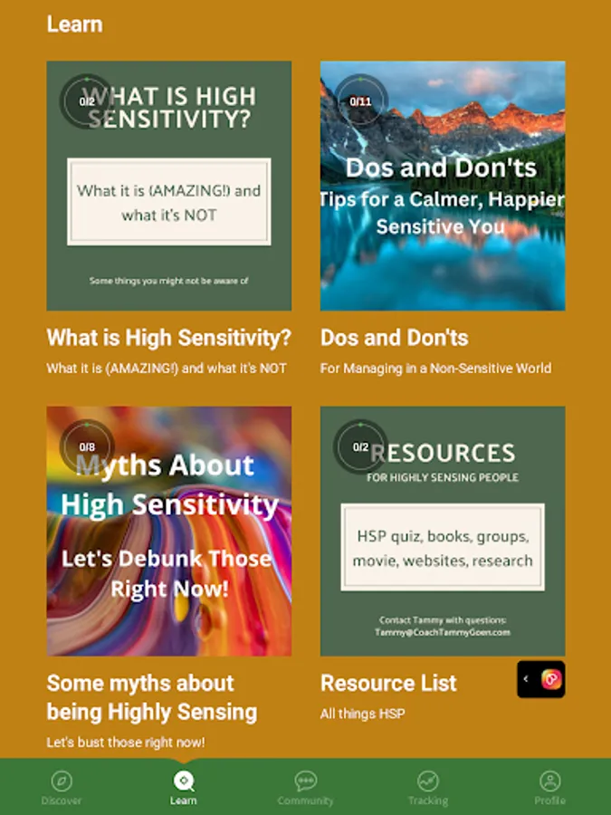 I've curated the offerings in this app with the intention of helping as many other HSPs as possible to feel calm and happy. I've been through the journey of surviving to thriving myself and it's my mission to help you avoid many obstacles, remove some blocks and see and create a bright future.