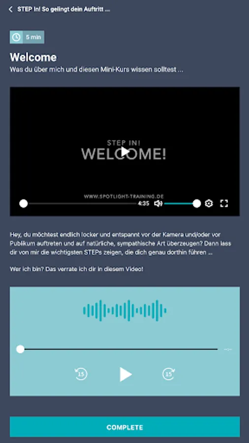 STEP in! und beginne, dein Potential zu entdecken und zu entfalten! Diese App zeigt dir die entscheidenden Schritte zu einem überzeugenden, sicheren und charismatischen Auftritt vor Publikum & Kamera.