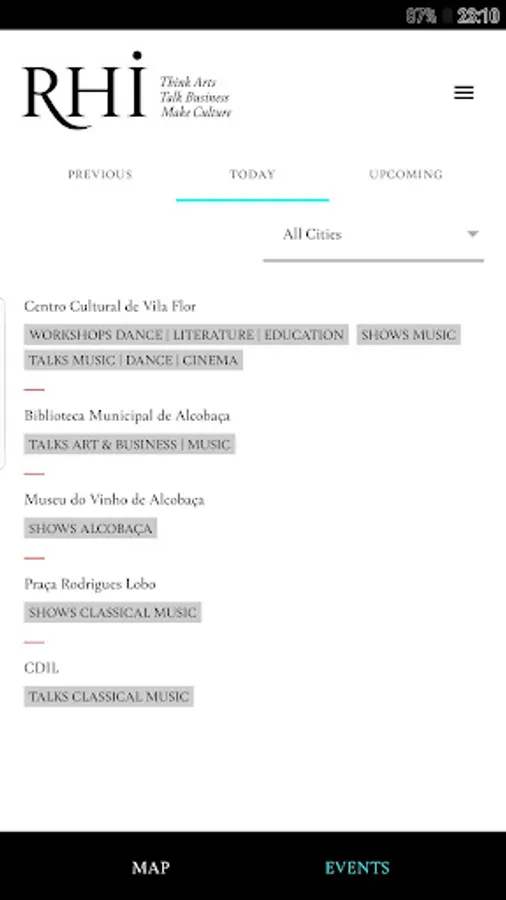 RHI_Think is an initiative organized by the Arte Institute that intends to re-imagine contemporary culture and mobilize artists, cultural agents and the public for a new attitude. Motivated by the necessity of re-inventing the dialogue between arts, culture and business, RHI_Think continues and amplifies the Arte Institute's mission of valuing the artistic production and creating bridges between Portuguese artists and worldwide projects.