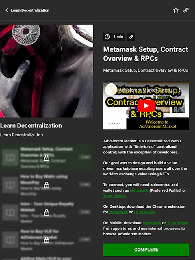AdValorem Market is the ultimate platform for creating and earning royalties from custom NFTs. With our easy-to-use tools, you can learn to mint, list, sell, transfer, and redeem NFTs with ease. Build your community loyalty and earn VLR tokens by subscribing for just $1.99/month and receive 1 free MATIC to start.