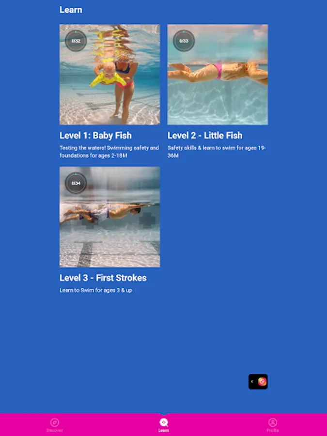 Our 3 courses are broken down by age according to children's developmental abilities - Baby Fish is for babies age 2-18M, Little Fish is for toddlers age 18M-3Y, and Learn to Swim is for ages 3Y & up.