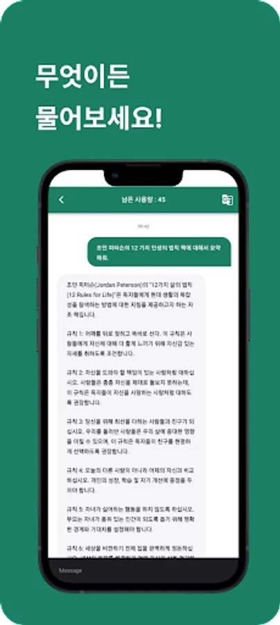 ChatChat is equipped with an automatic translation function, so even if you ask a question in Korean, you can get the same answer as if you asked a question in English! Other features include text extraction (OCR) within images, PDF summarization, and more.