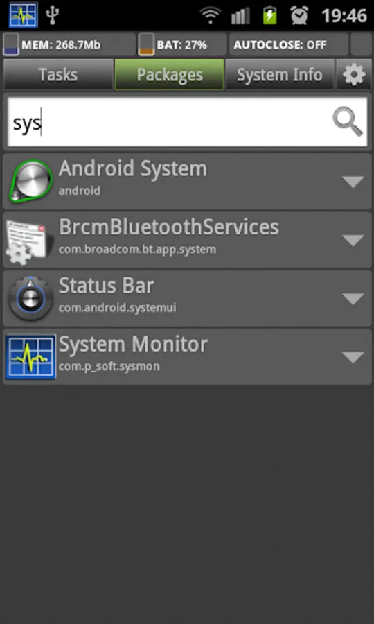 ► Auto closing tasks. To allow closing of system tasks, you need to enable option «Closing system tasks» in «Menu/Settings/Memory clearing».