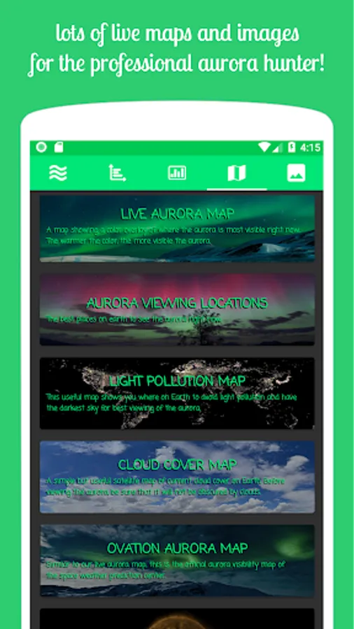 AuroraCast is the most fully featured aurora forecast, northern lights, and southern lights app available for mobile devices. AuroraCast is an accurate and powerful aurora borealis forecast app, but there's many more features found inside that you won't find in any other aurora forecast app! Some features include KP + Magnetic field info, Light Pollution Map, Cloud Cover Map, Northern Lights Webcams, Weather Forecast, Aurora Alerts, Live Aurora Map, Sun & Moon Information, Widgets, and more! Scroll down to see a detailed summary of the most important features in AuroraCast: