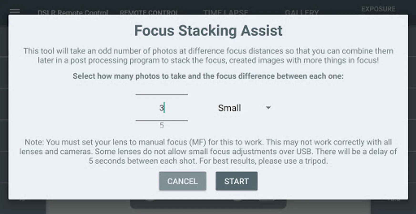 DSLR Remote Control is the #1 downloaded app that will allow you to remote control and trigger your Canon or Nikon DSLR camera from your phone or tablet with a tethered USB OTG cable or wifi, turn your phone or tablet into a DSLR Controller today! See a live preview on your phone or tablet, adjust shutter speed, aperture, ISO, and more. You can even make very small micro focus adjustments for critical work! But there's many more tools besides the camera remote control functions.