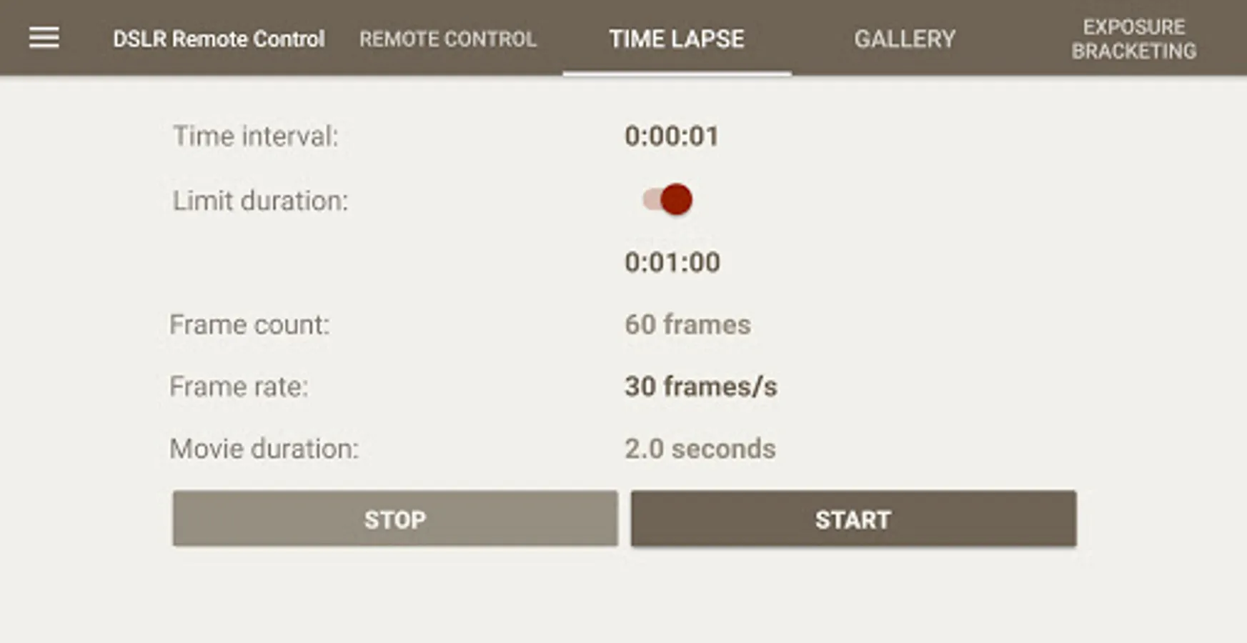 With TetherMonkey, taking time lapse photos is easier than ever! You can set your camera to fire automatically at any interval or speed that you set, and set how long you want it go. It will also calculate how long a time lapse video will be, with a FPS (frames per second) that you set.