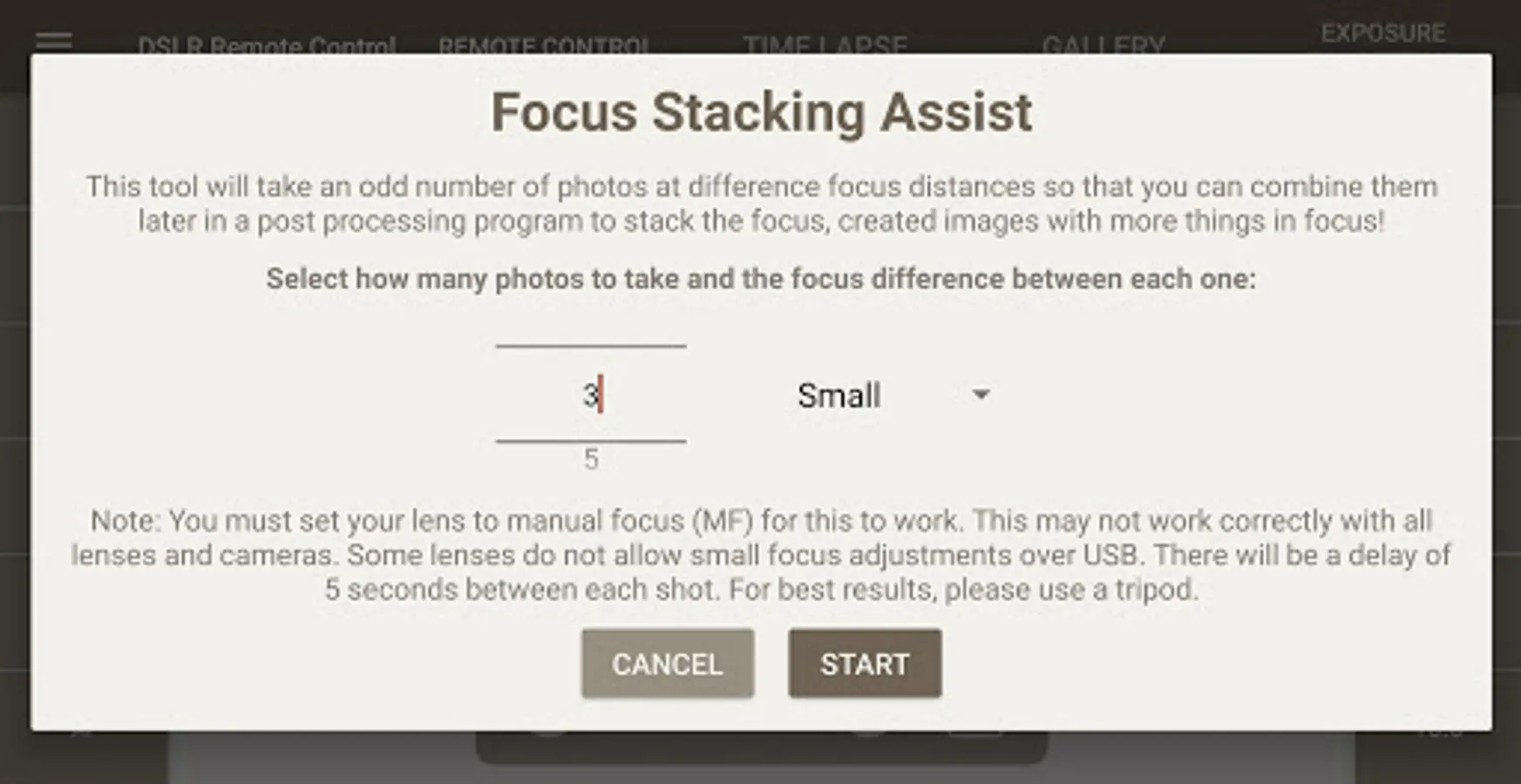 TetherMonkey has a unique Focus Stacking Assist tool, which allows you to automatically take a set number of photos with a variance in focus, so that you can stack them together later in post processing.