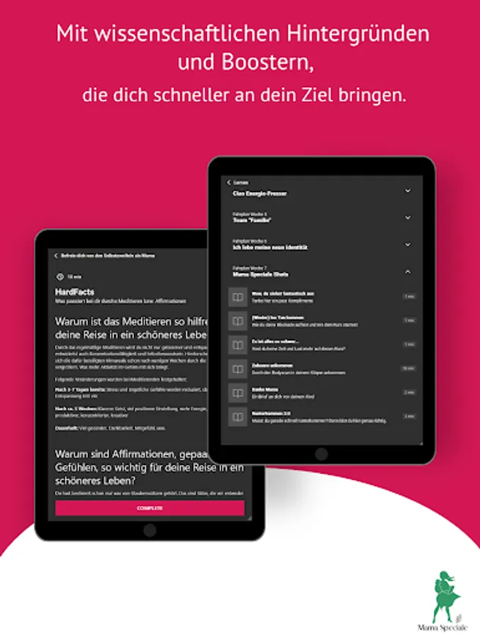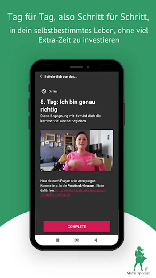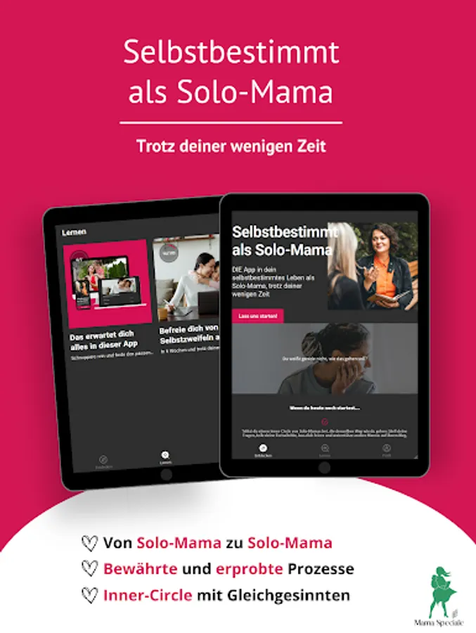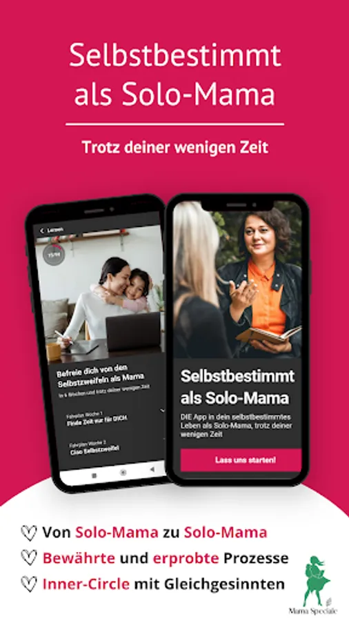 Diese App ist für alle Solo-Mamas, die sich im Funktionieren-Modus befinden und viel an sich zweifeln. Die dieses Gefühl so gut kennen, an keiner Seite so richtig zu genügen oder anzukommen. Die jeden Tag eine Gratwanderung erleben zwischen gutem Gefühl und schlechtem Gewissen, zwischen Hamsterrad und selbstbestimmten Handeln, zwischen “Es geht mir eigentlich ganz gut“ und einem absoluten Ausbrennen?