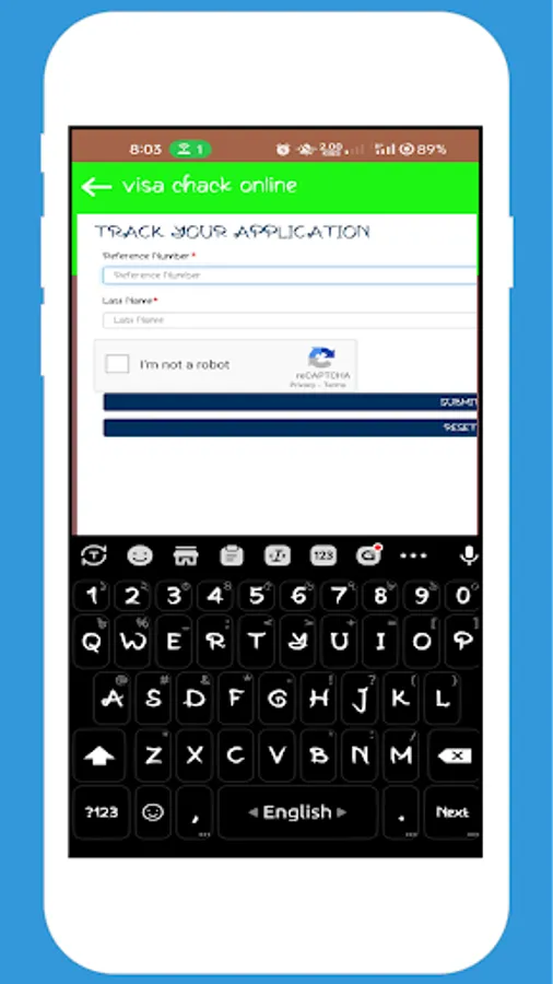 Form the first page you can select the which type you want to check. and the app showed you three option for visa checks. You can select which you need after that the app redirect you to the selected country's official visa checking website or portal where you can check you visa entering the required information.