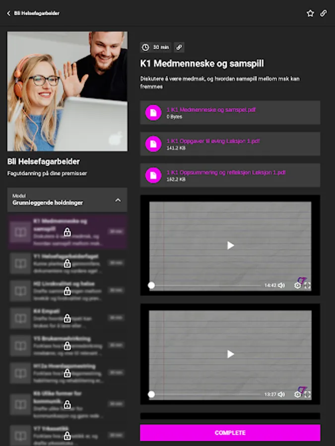 Få tilgang på videoleksjoner, lydfiler, oppgaver, oppsummeringer, tips og veiledning, fellesskap og annet lærestoff som tilhører tema.