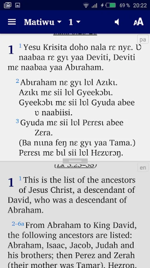 - "verse by verse" to display a verse in Paasaal followed by the same verse in English.
