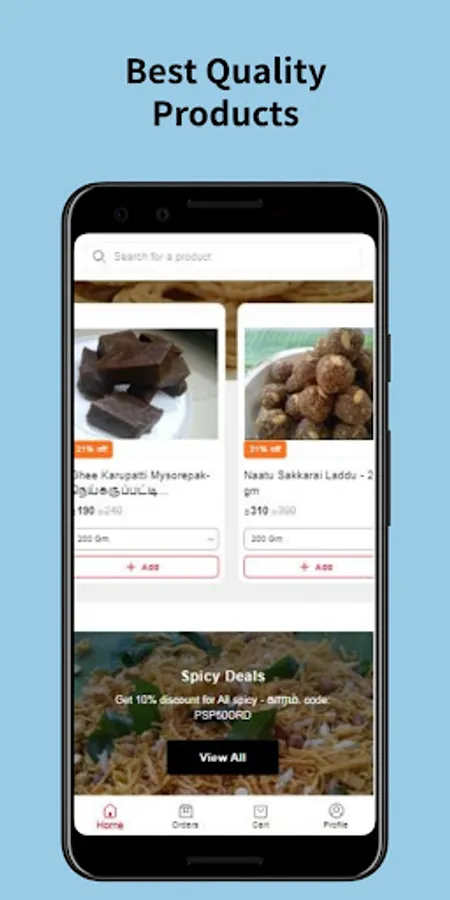 We Are Selling All Kinds Of genuine Homemade Snacks From homes. Prepared By Talented Women Members. We Choose Only Organic And Pesticide Free Ingredients And Flours For Making Our Snacks. We Don’t Use Any Kind Of Preservatives, Additives Or Other Agents In Our Home Made Treats. Main Snacks Under Our Home Made Treats Are Arisi Murukku,Kai muruku, Kuchi/Ribbon Pakoda,Thattu vadai, Kadalai mittai, Multigrain Sathumavu and Kanchi, Karupatti(Palm Jaggery) Ellu lattu, Karupatti(Palm Jaggery) Mysore pak, Nei(Ghee) Biscuits, Homemade Idly Ellu and Groundnut powder.