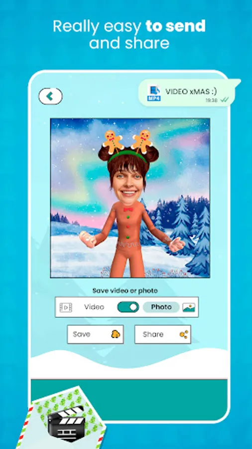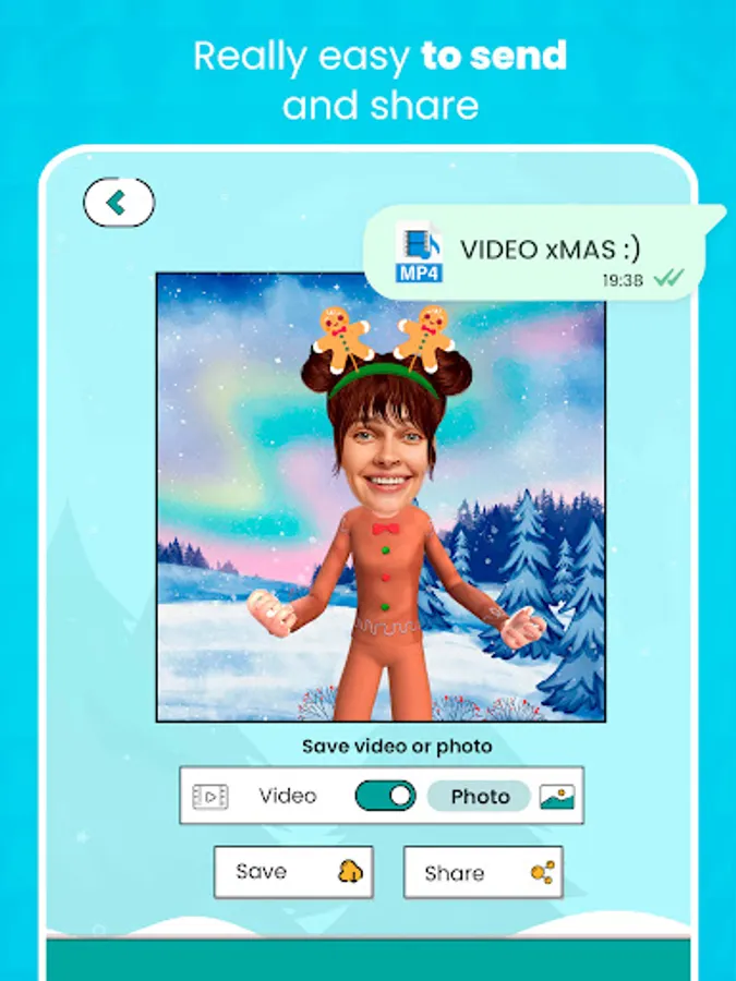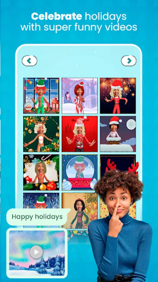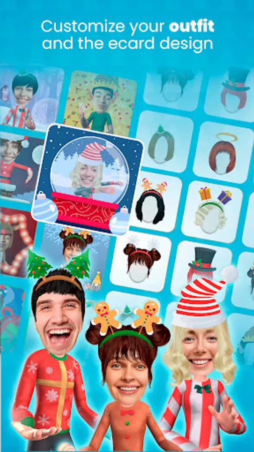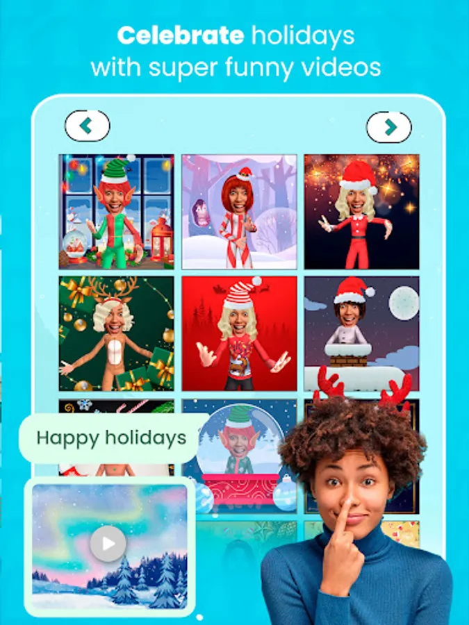 Check the costumes and accessories that you can use to customize your character. Wear an ugly Christmas sweater or put on a Santa hat. Dress like an Elf or dance in your funny pajamas, the options are endless. Go ahead, design your own share your greetings and give that special someone a good laugh.